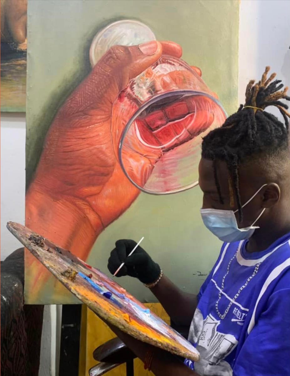 The painting by the Nigerian artist Ogamba James Diving Wine From Most High:
